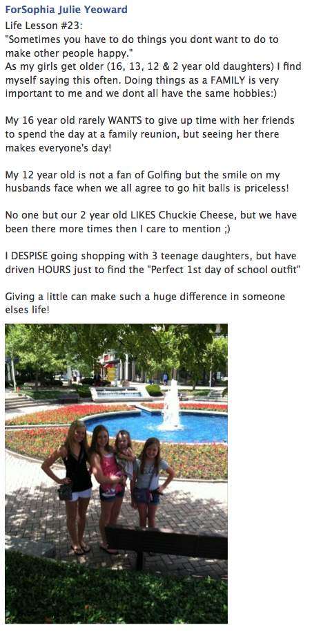 We are trying to teach them to never take your body for granted and to experience everything you can. Love God and put others before yourself. Reading these posts brought tears to my eyes.