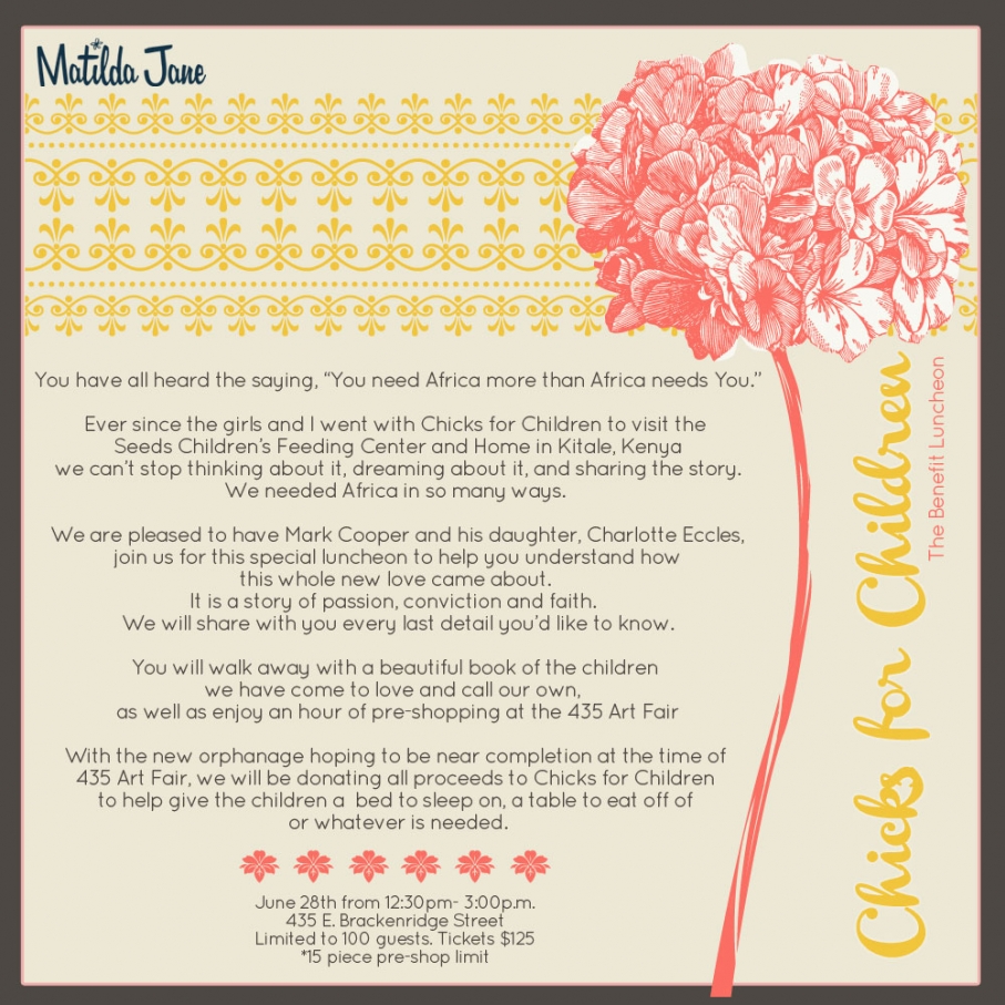 Kenya is very near and dear to my heart because my husband is from Nyeri. I have been there and seen first hand the love and support these sweet kiddies need. I am beyond ecstatic to be able to help support MJC’s efforts and give a child the chance to grow up and be sophisticated, colorful and always a wee bit cheeky!