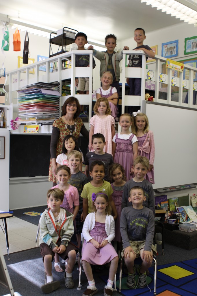 Remember last week when Gabe’s class came to 435? We wanted to give them the authentic Matilda Jane experience, so one of their activities while they were here was pulling and packing their very own orders. After the packages were ready to go, they shipped them to their houses and anxiously awaited the arrival of their new MJC and TGO duds. Today Chelsa and I dropped in on the class to snap some photos of them their on “special dress up day.”
