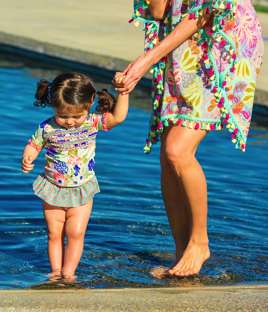 Our Design Team has been dreaming of the sweetest poolside pieces, and they are so excited to bring them to life this year for our first ever swim collection! There is a little something for everyone and a way to make the look uniquely yours with some mix and match options. Not only are these beautiful pieces adorned with Maggie’s amazing artwork, but each of our swim pieces also has UV Protection of 40+. The prints are full of whimsy and speak to the playful MJC spirit that we see and love in all the beautiful photos that you share with us!