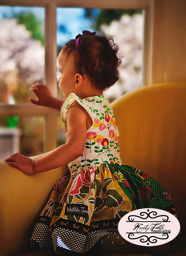So my contest is for you to send us something that reminds you of Matilda Jane Clothing. And there are a few requirements. It must fit into a envelope no bigger than 12-1/2″ X 9-1/2″. That is your typical USPS Priority Mail Envelope. It doesn’t have to be a “thing”. It can be a story, a word, a picture, little pieces of fabric, it can be anything. All entries must be accompanied by a pic of your daughter or you in MJC gear. And it does have to be received by us at MJC, attn “Sara S., 435 e Brackenridge, Fort Wayne IN 46802. And it has to be received no later than April 30.