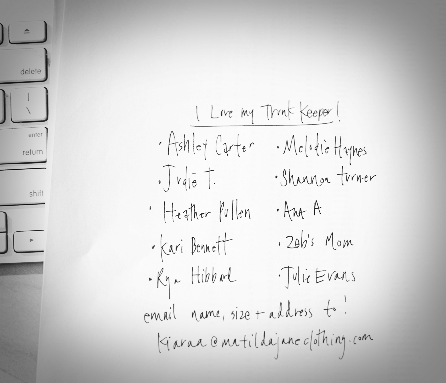 HI Julie! Welcome. One, if you do not have a Trunk Keeper to order, just shoot the office an email and they can put you in touch with one. Two, as far as contest and giveaways go you just need to follow the blog and you’ll be in the loop!!